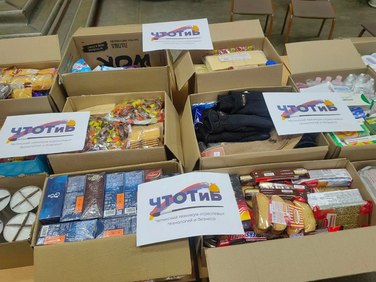 Волонтёры, преподаватели и студенты Читинского техникума отраслевых технологий и бизнеса организовали сбор и передачу помощи для земляков-участников СВО.