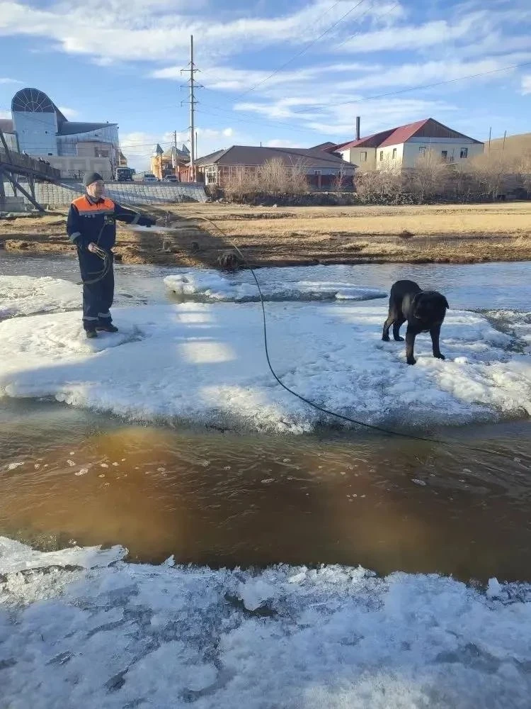 Спасатели сработали чётко: с помощью верёвки и поддонов для опоры вывели мальчика и собаку на берег. Медицинская помощь не потребовалась.