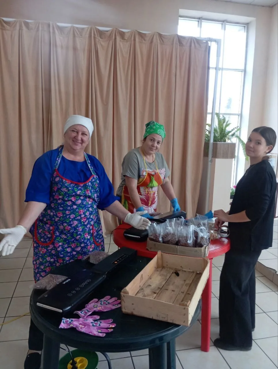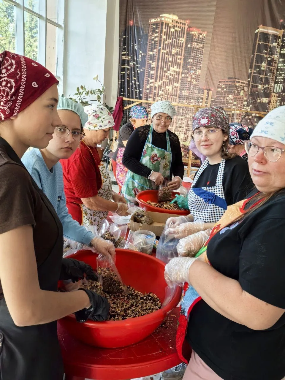 Красночикойские хозяюшки приготовили вместе со школьниками и студентами для наших воинов 12 тысяч порций сухого супа. Это борщ, щи, гороховый, рассольник. Всё — из натуральных, домашних продуктов. И главное, сделано своими руками, по-домашнему.