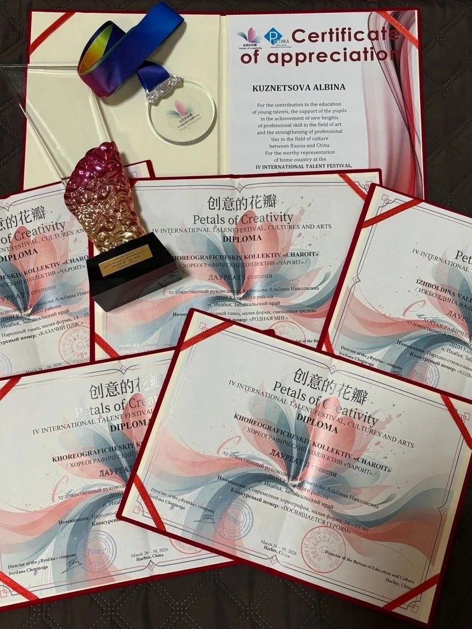 Ребята средней группы впервые участвовали в таком конкурсе и сразу стали лауреатами II степени в номинации «Эстрадный танец» и получили диплом I степени в номинации «Народный стилизованный танец».