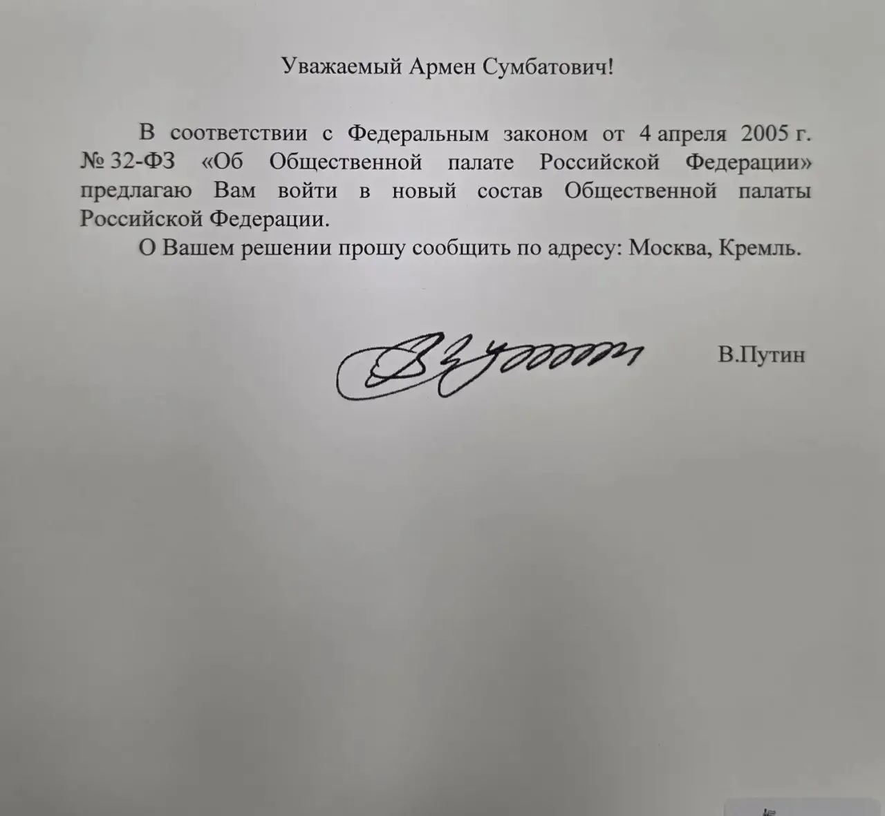 Получил предложение Верховного продолжить работу в Общественной Палате РФ.