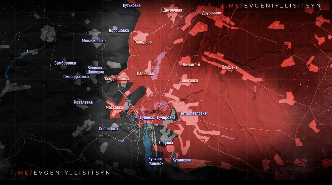 Противник атакует центр, юг и север правобережного Купянска, но оборона удерживается, ведутся контратаки с расширением серой зоны. Враг наносит удары со стороны Московки, Соболевки и Радьковки в направлении Голубовки, пытаясь перерезать логистику у Оскола. Отмечается продвижение в районе Куриловки в сторону Купянска Узлового, а также давление на Петропавловку, Ковшаровку и Новоосиново.