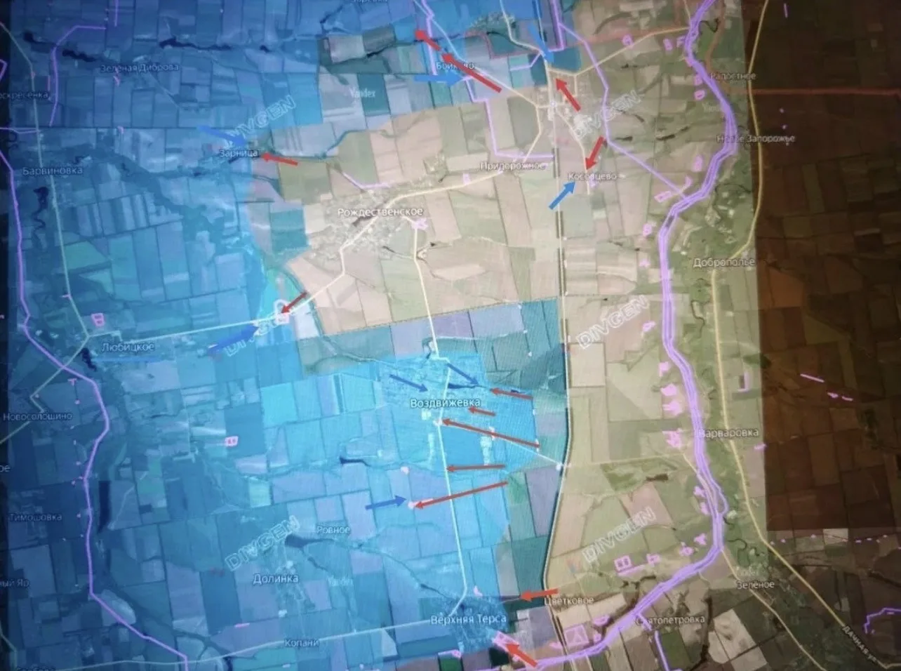 Севернее, из района Бойково - Рождественское - Терноватое наши подразделения продолжают атаковать в направлении Любицкого, Зарницы и Зоревки.