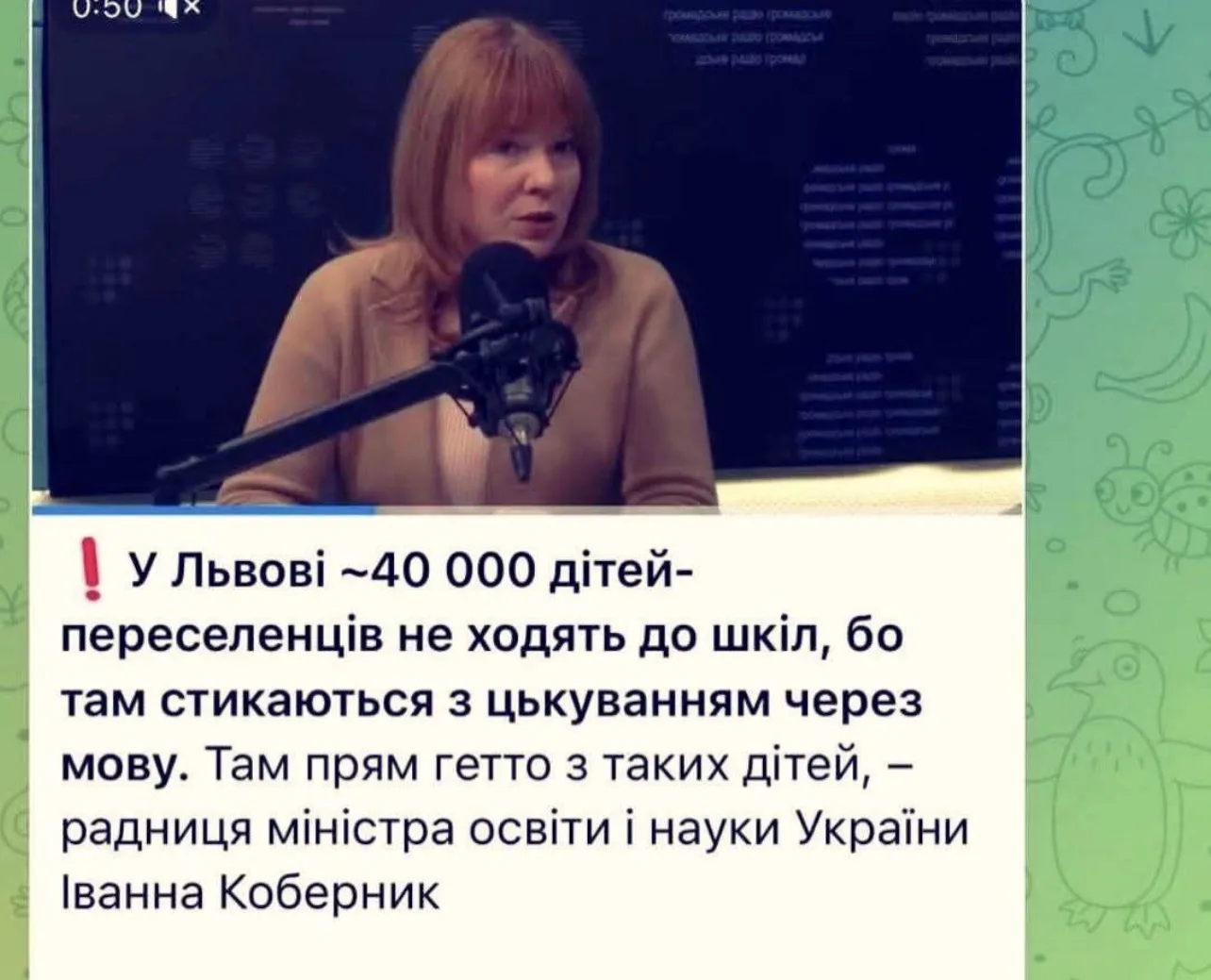40 тысяч детей беженцев с Восточной Украины, которые находятся во Львовской области, не ходят в школу, потому что их там преследуют за русский язык — в государственном геноциде признается советник министра образования Украины Иванна Коберник