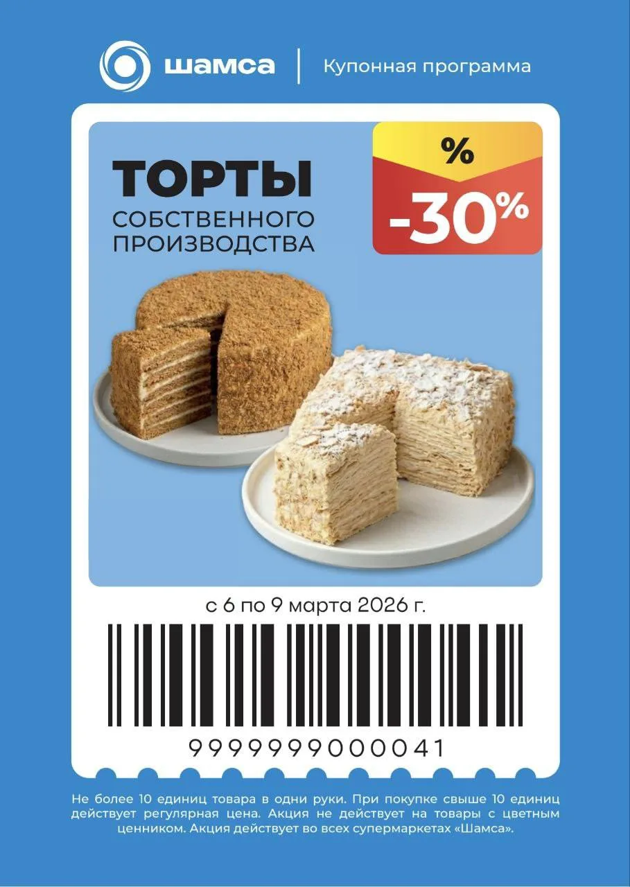 📍 Акция действует во всех супермаркетах «Шамса» с 6 по 9 марта.