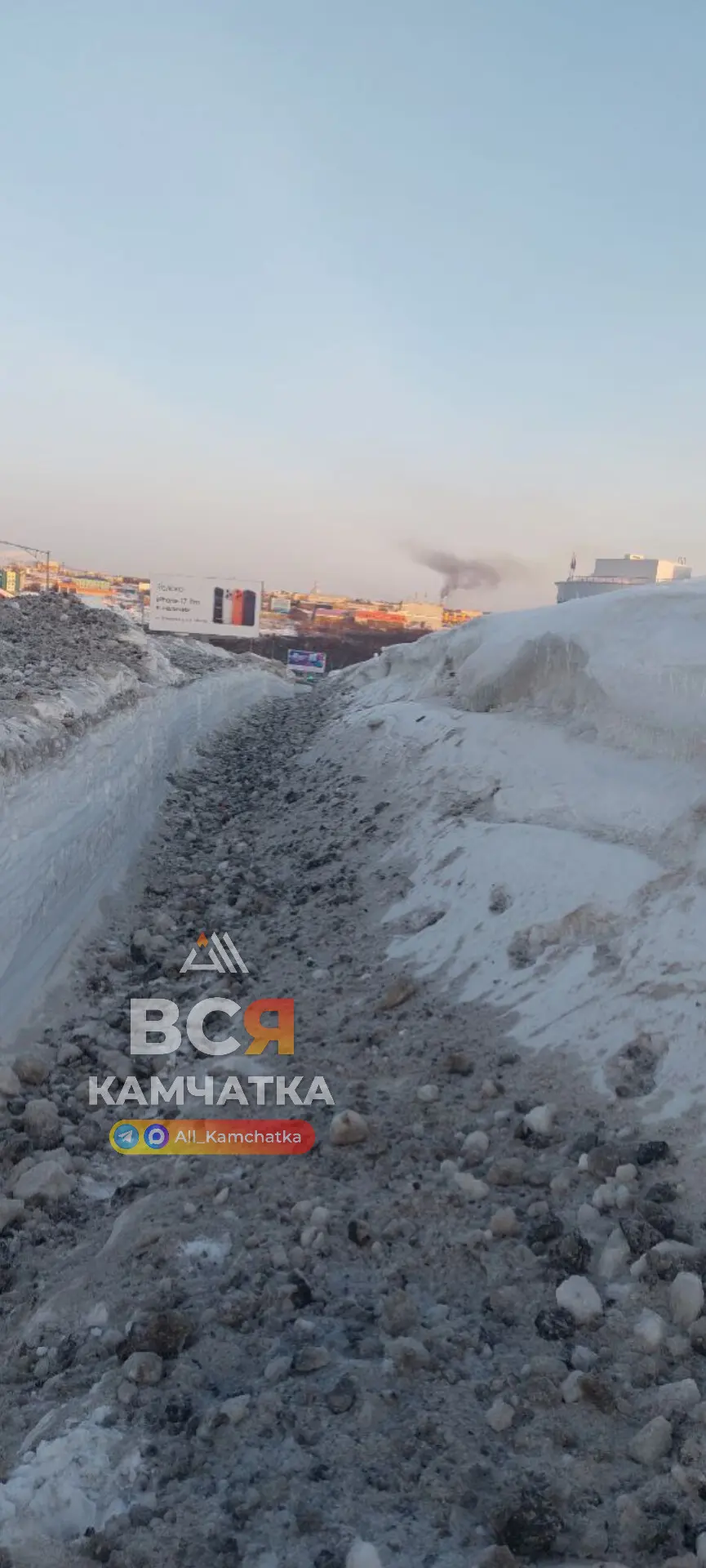 КП, огромный поток людей, а ситуация как после апокалипсиса. Уже несколько недель не могут почистить дорогу: под ногами ледяные колдобины, по которым невозможно идти без падений, а прямо над головой с козырьков магазинов свисают сосульки.