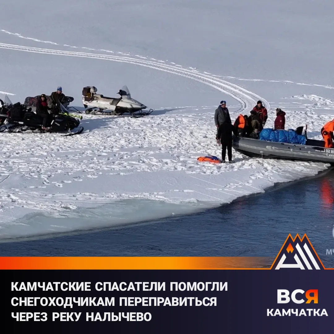 Сотрудники МЧС России оказали помощь группе снегоходчиков, которые не смогли самостоятельно пересечь реку Налычево в Камчатском крае.