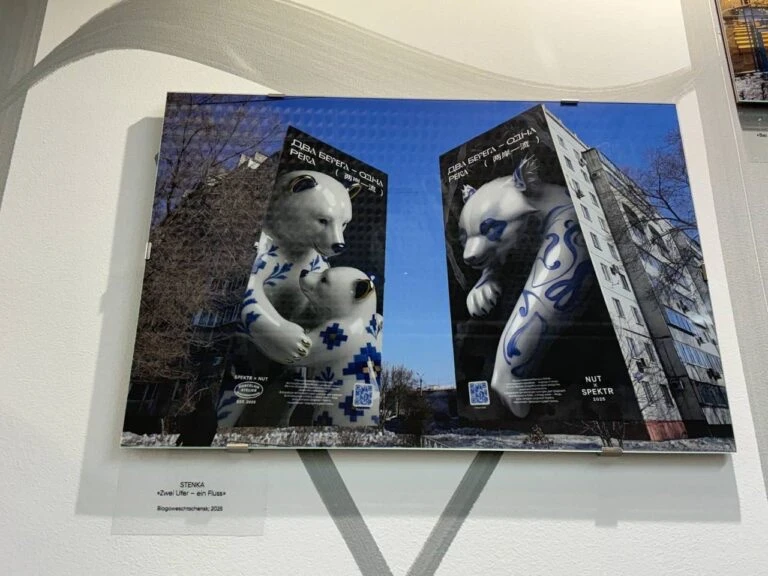 На выставочной площадке представили снимок мурала «Два берега – одна река».