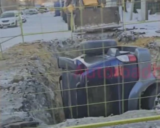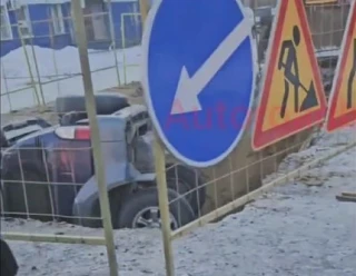 В районе дома № 230 на улице Театральной, где проводятся дорожные работы, автомобиль Toyota Land Cruiser Prado вылетел с проезжей части и провалился в котлован.
