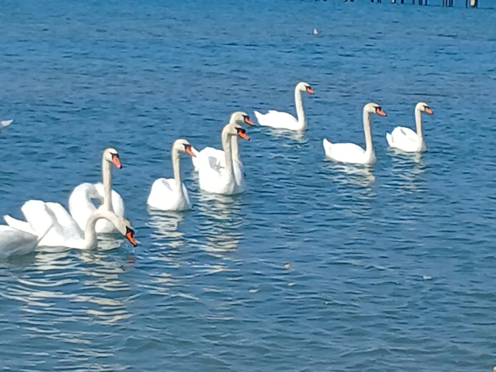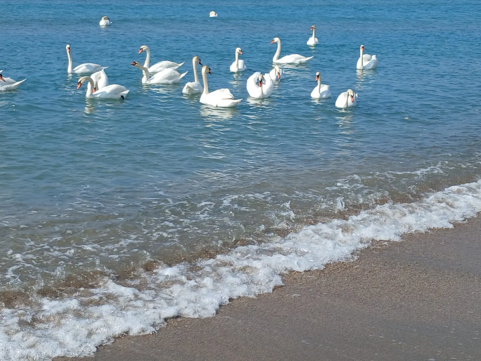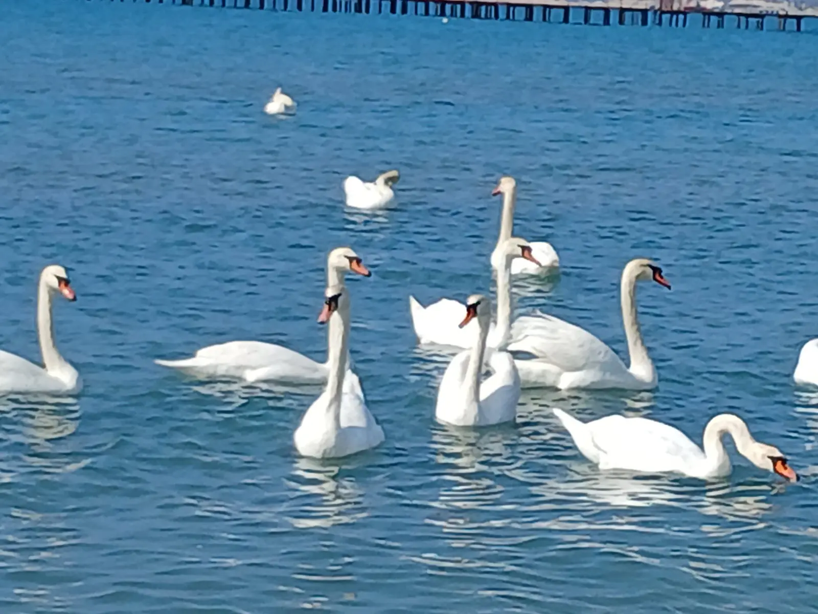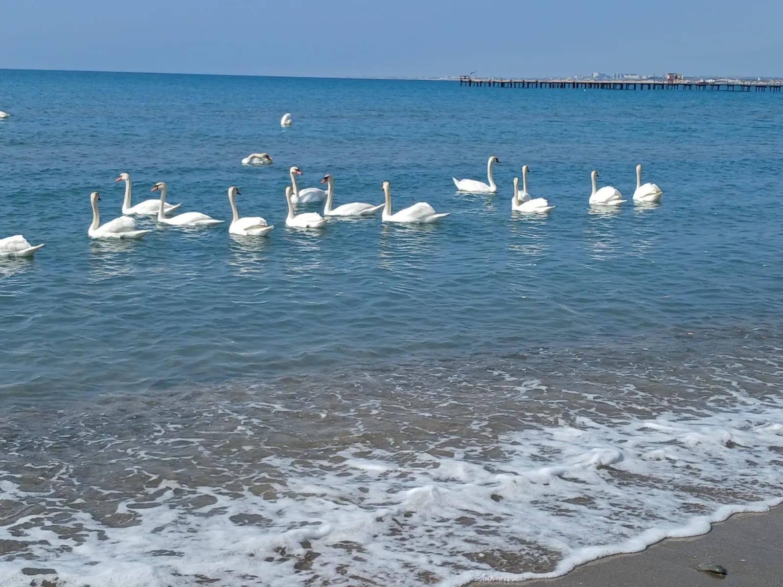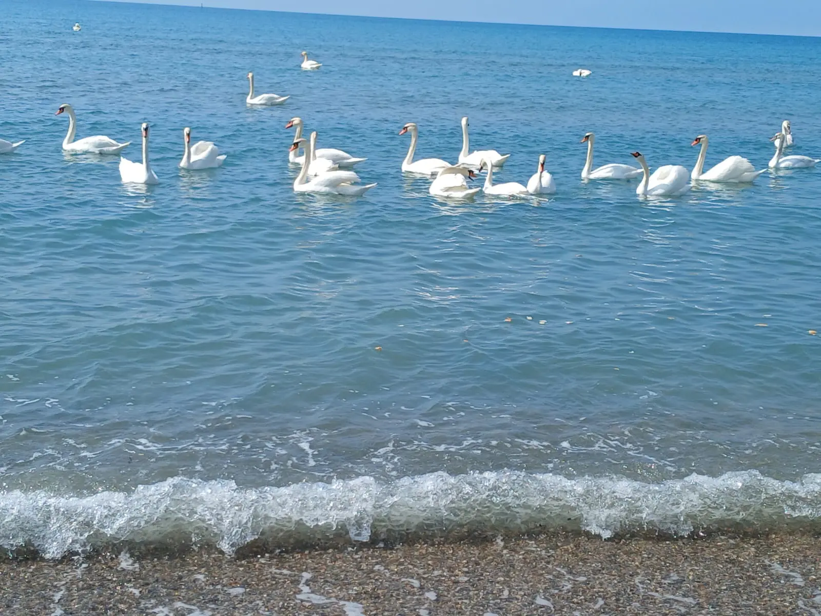 Солнце сегодня яркое, море синее, лебеди белые - район Центрального пляжа Анапы😍