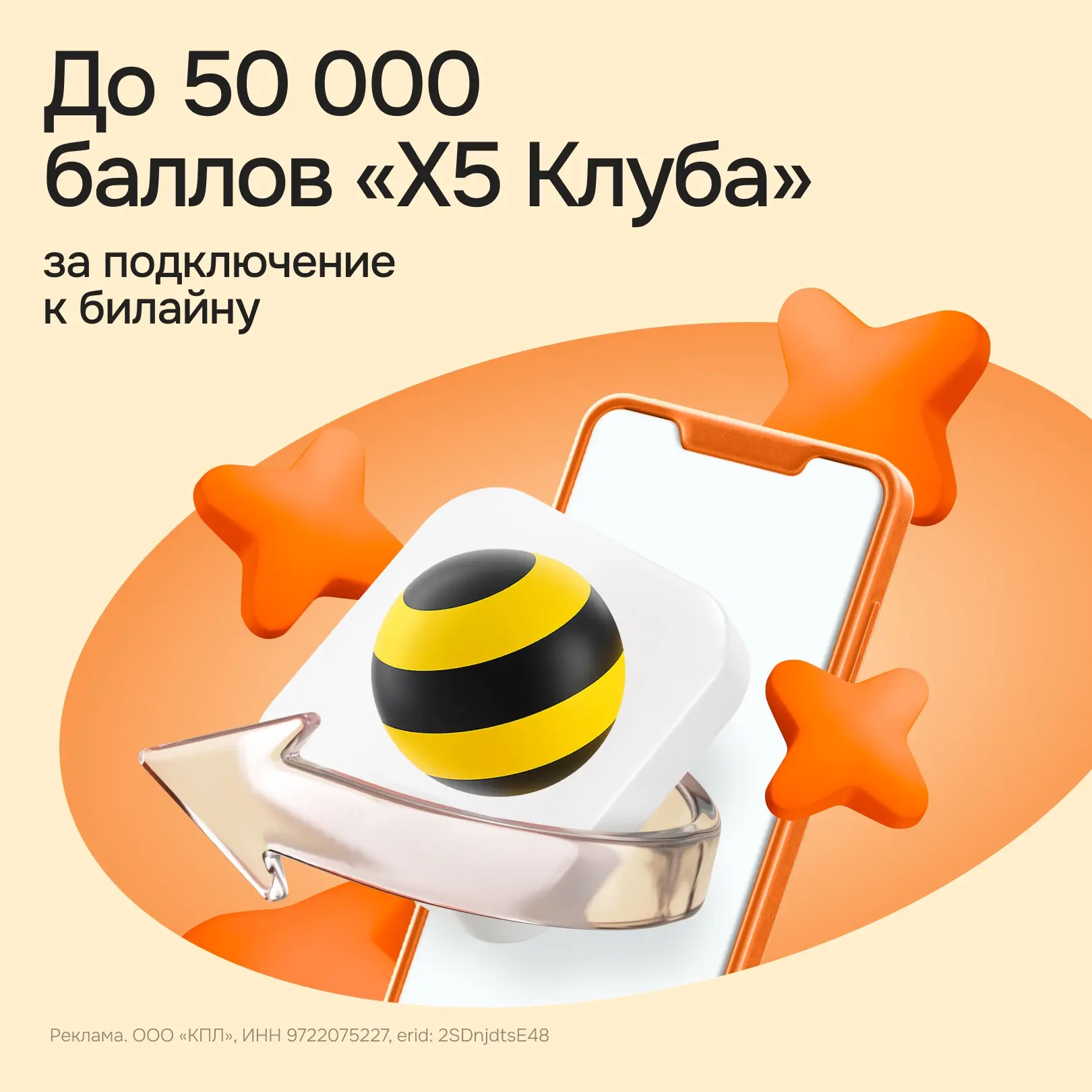 Сейчас за переход в билайн можно получить 50 000 баллов «Х5 Клуба». Вы сохраняете свой номер, подключаетесь к билайну, а баллы можно потратить на привычные покупки в «Пятёрочке» и «Перекрёстке».