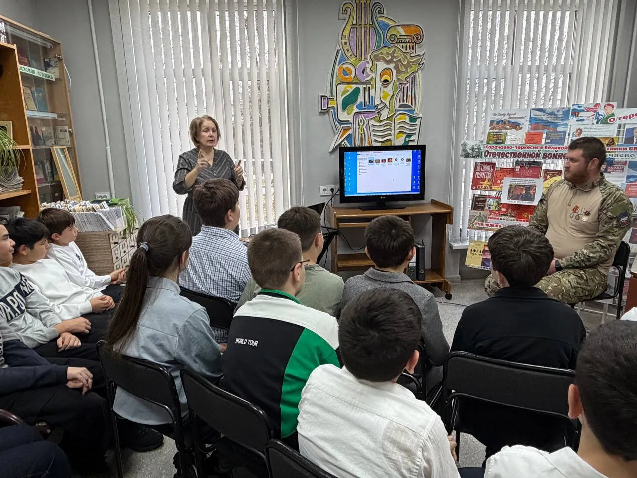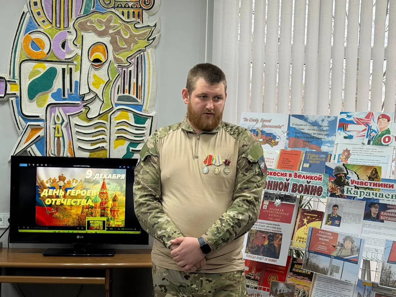 🔹В Карачаево-Черкесской республиканской детской библиотеке имени Сергея Никулина в День Героев Отечества состоялась особенная встреча. Урок мужества для школьников провёл участник специальной военной операции, социальный координатор филиала Государственного фонда «Защитники Отечества» Максим Жилин — человек, для которого слова «честь» и «долг» давно стали жизненным принципом.