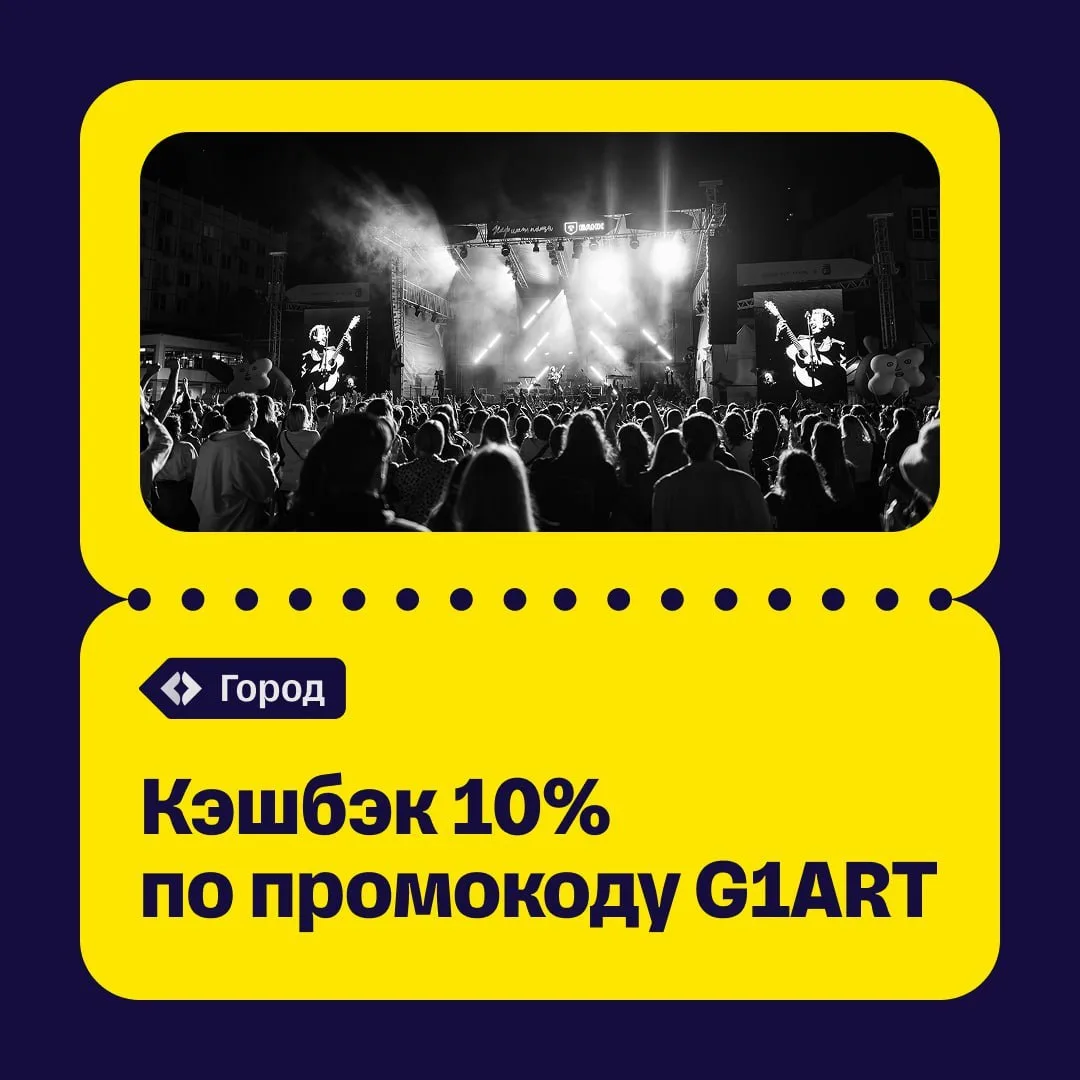 При покупке билетов через «Афишу» ты получишь кэшбэк до 20% на карту Т-Банка! А по промокоду G1ART ещё +10% (до 300₽)!