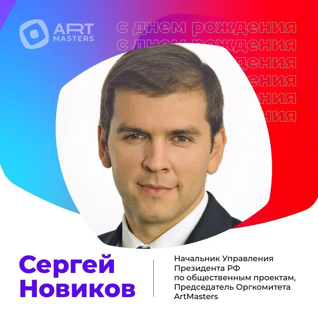 Сегодня поздравляем начальника Управления Президента РФ по общественным проектам и председателя Оргкомитета ArtMasters Сергея Новикова.