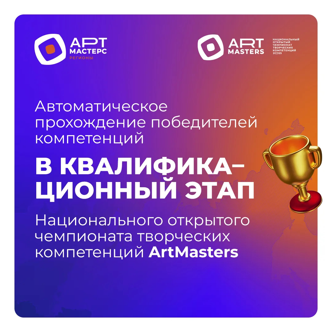 ◽️ Попадание в квалификационный этап Национального открытого Чемпионата творческих компетенций ArtMasters-2026, минуя отборочный этап