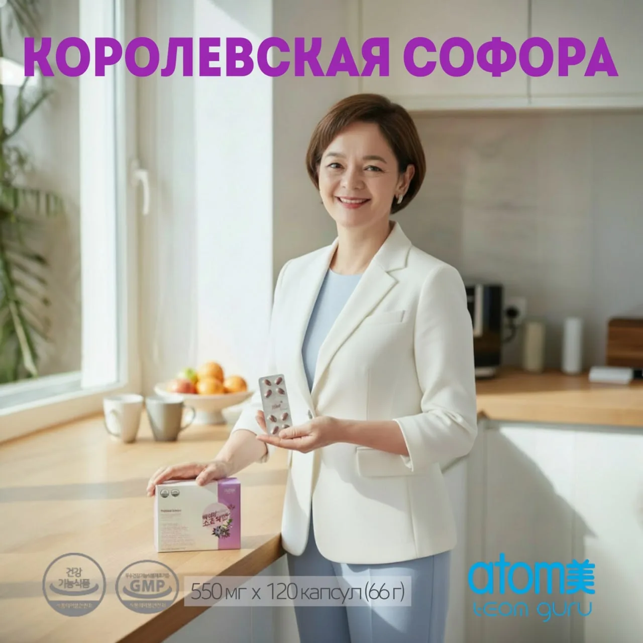 🔹Королевская софора Атоми содержит помимо основного ингредиента еще комплекс полезных активных ингредиентов, которые помогают сохранить здоровье женщин во время менопаузы и справится с такими проблемами как горение лица, бессоница, нервозность, дипрессия, голокружение, усталость, болезнь суставов, головные боли, частое серцебиение, сухость влагалища и прочими симптомами менопаузы.