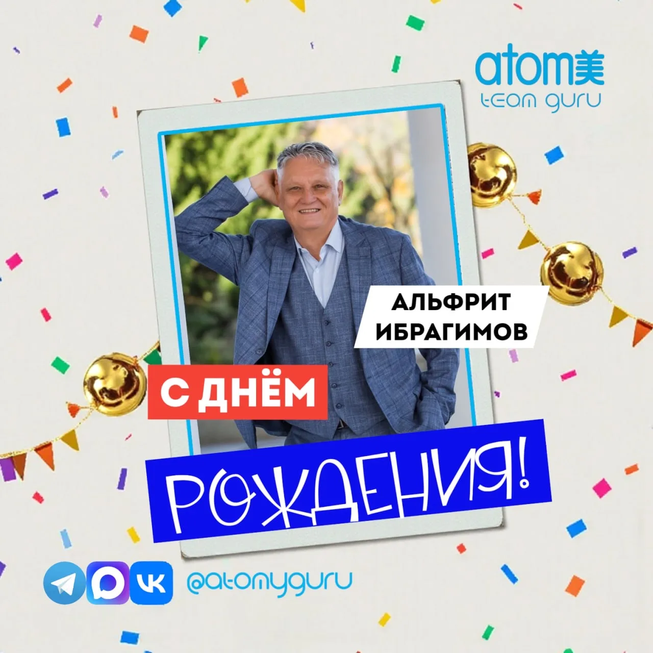 Сегодня свой День Рождения отмечает Лидер Atomy, Sale Master, специалист по качеству и знаток продукции и бизнеса Альфрит Ибрагимов🎈✨