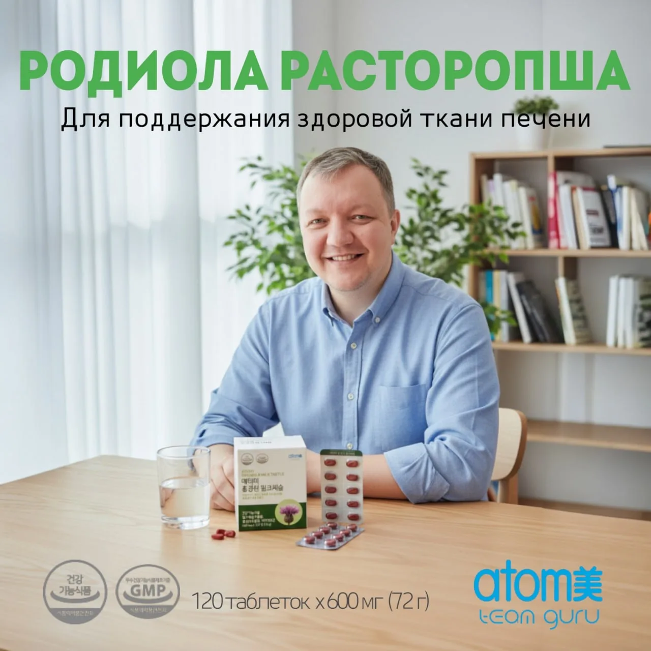 Родиола расторопша – многокомплексная формула для поддержания здоровой ткани печени с экстрактами расторопши, родиолы розовой , витаминами В1, В2, В6.