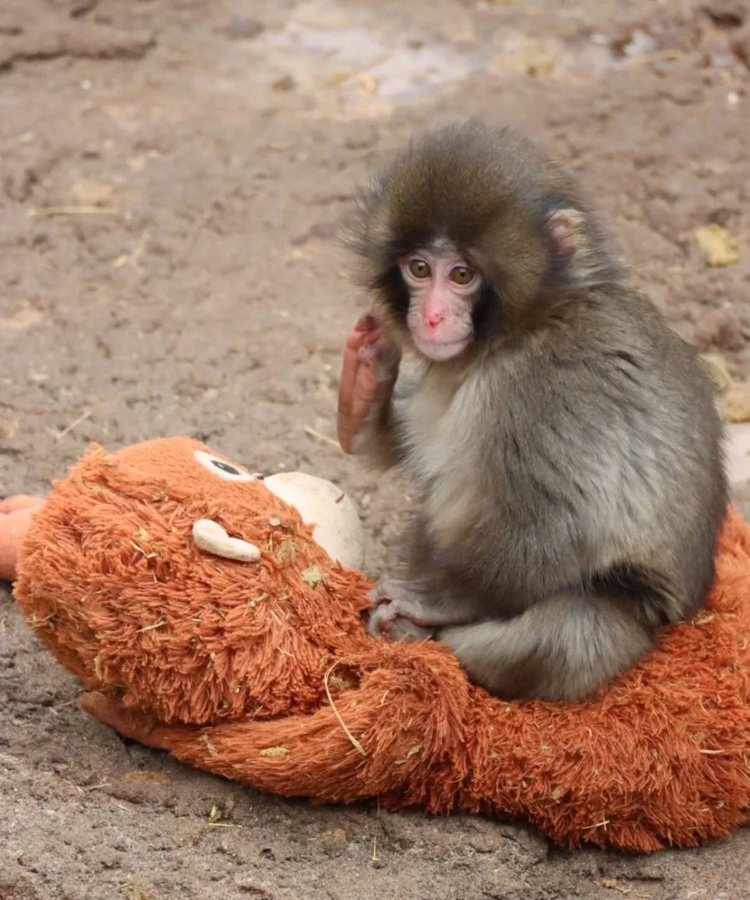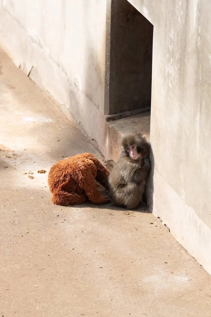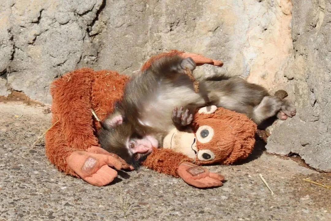 Маленький макак в японском зоопарке утратил мать и поддержку стаи, из-за чего прижился к игрушке как к заместителю привязанности.