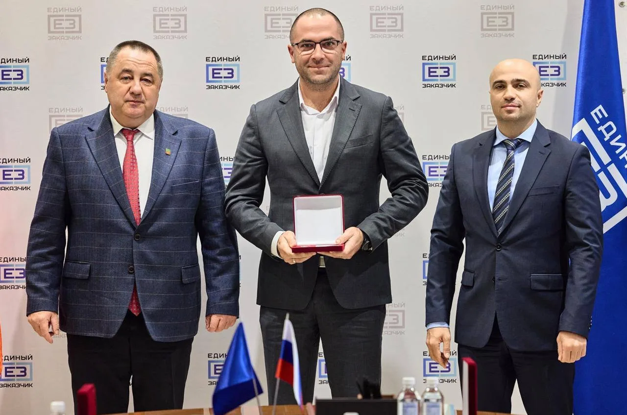 Мой заместитель – руководитель Представительства Запорожской области в городе Москве Сергей Анатольевич Гуляев передал награды сотрудникам «Единого заказчика», которые вносят большой вклад в работу по строительству, восстановлению и модернизации социальных объектов в Запорожской области.