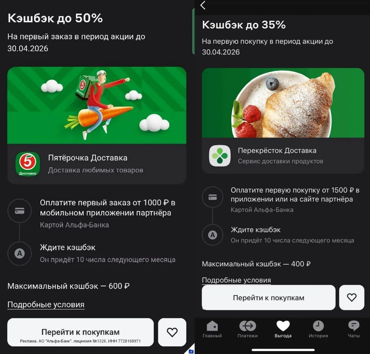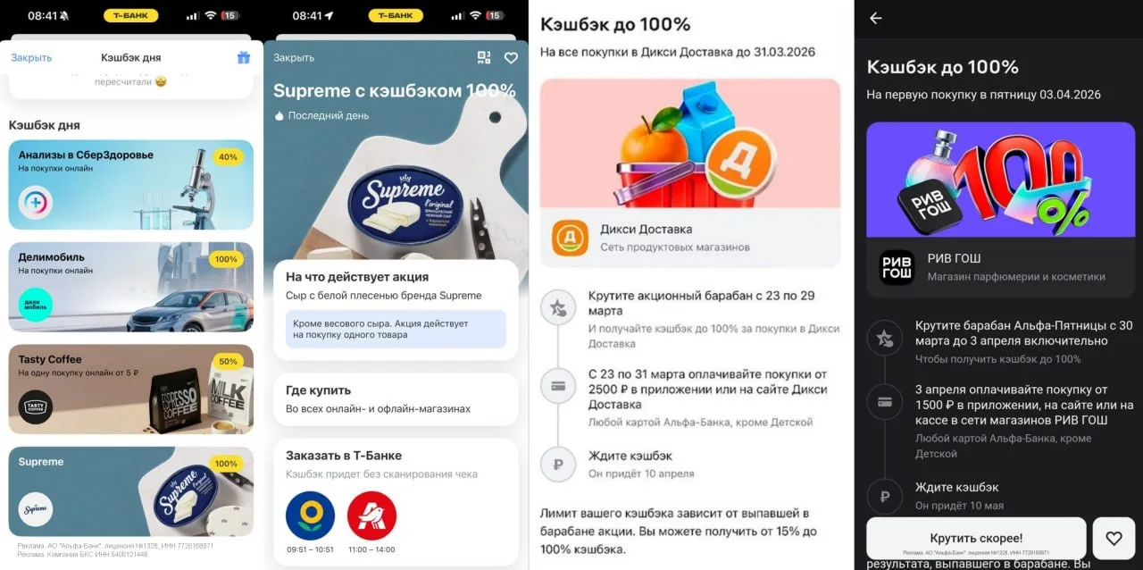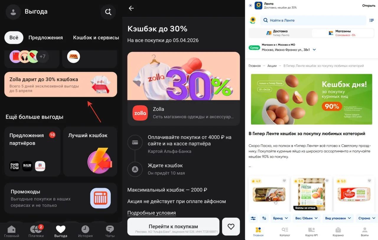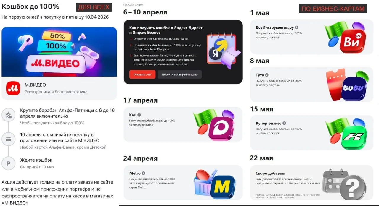 ❤️ Альфа: у некоторых клиентов замечена персоналка в МП — кэшбэк на ЖКУ в течение полугода: 3% первые два месяца, 2% с третьего по шестой. Искать баннер в разделе Выгода или при входе.