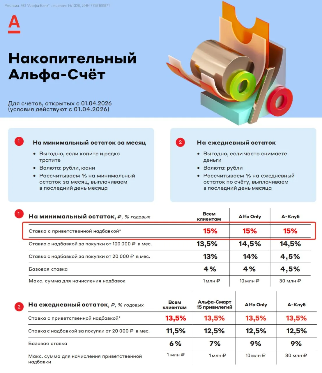 ✅ Открытые с 01.04.26 — промо осталась 15% (условия по лимитам те же)