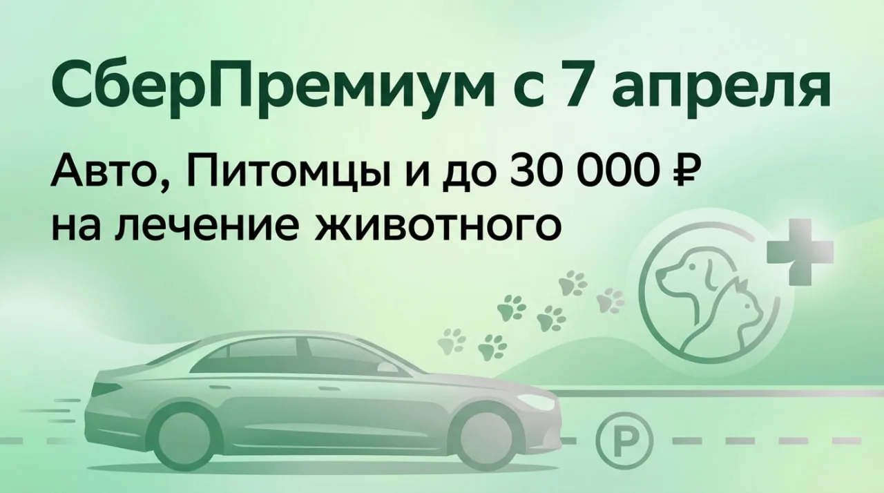 Изменения в Сбер Премиум с 7 апреля: «Авто», «Питомцы» и до 30к на лечение животного