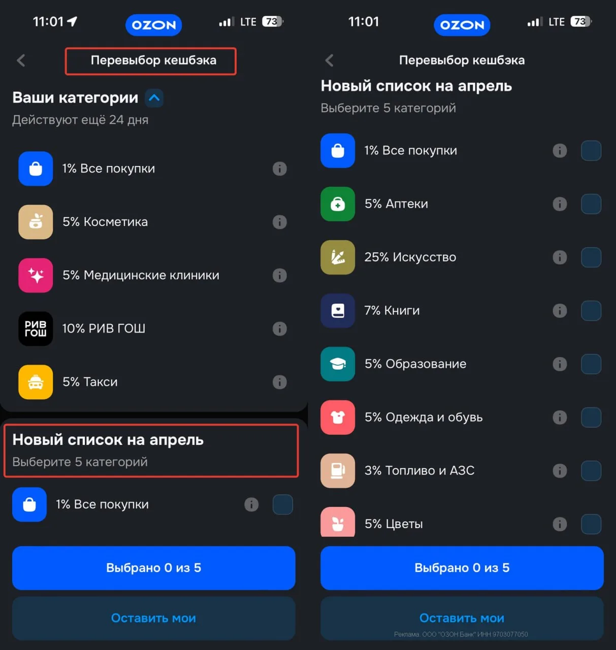 💳 По Ozon карте снова новые персоналки — например, 5% на всё, макс. 1000₽. Проверяйте у себя в МП.