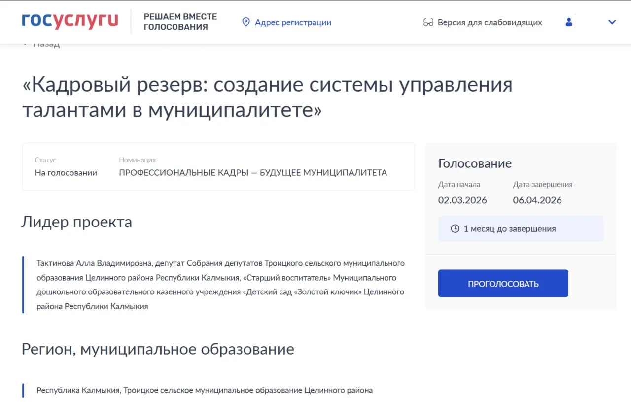 Поддержим Аллу Владимировну в номинации «Профессиональные кадры – будущее муниципалитета» и обратим внимание на другие проекты. Голосование – на «Госуслугах».