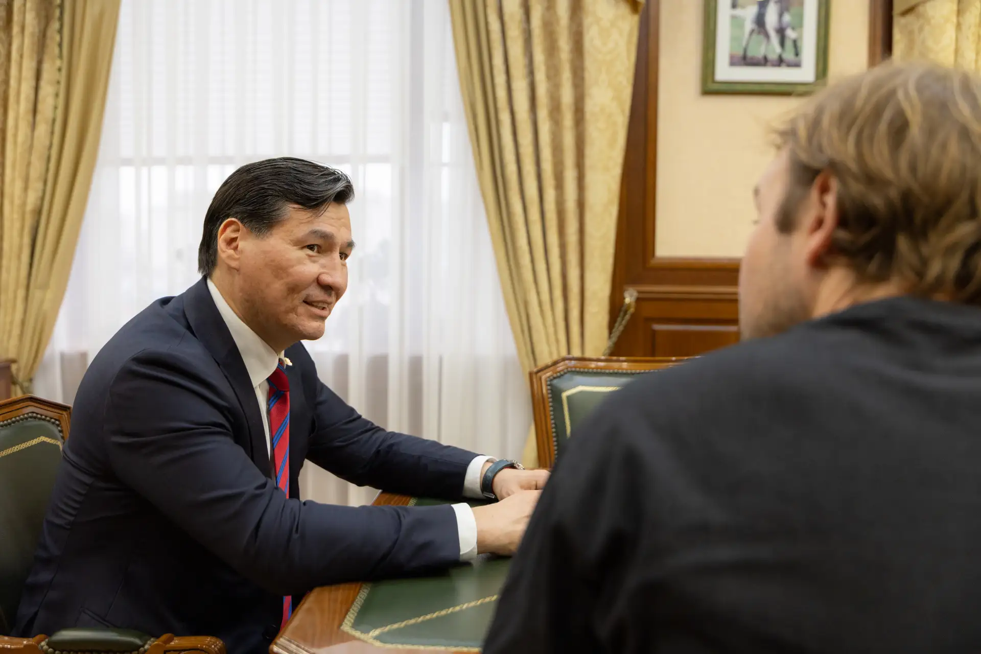 Провел рабочую встречу с министром культуры и туризма Калмыкии Евгением Владимировичем Бембеевым и поблагодарил за работу Саглару Денаевну Тюрбееву