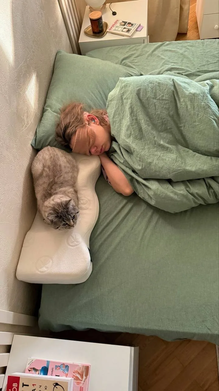 А потом как то незаметно для меня он спихнул меня с моей ортопедической подушки за 16 косарей и занял ее сам, а я даже не поняла, как оказалась на подушке Антона 🧐