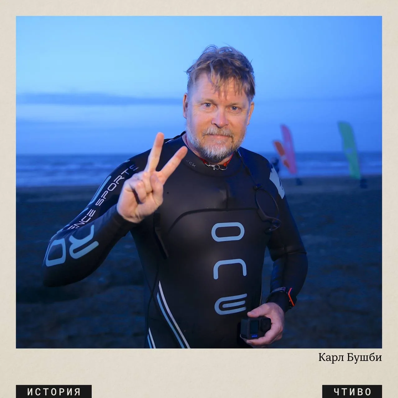 В 2018 году на пути странника выросла новая проблема — Ла-Манш, пересекать который по тоннелю пешеходам строго-настрого запрещено. Делать нечего: пришлось переплыть Ла-Манш при поддержке опытных пловцов и катера сопровождения. В 2024-м Бушби совершил новый заплыв: провел в воде 132 часа, пересекая Каспийское море (через Иран идти не получалось, а границы России закрылись).
