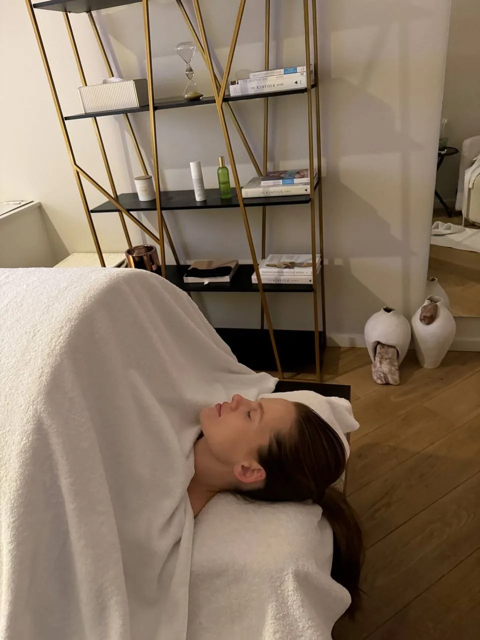 Сам процесс довольно медитативный. Все, что от вас нужно — это лежать в течение 40 минут под мягким пледом, пока инфракрасные волны бикарбонового излучателя моделируют вам стройное тело. Через организм в этот момент выделяются вредные вещества: от аммиака и соли до холестерина и жирных кислот. Но, правда, последние 10 минут тянутся нереально долго 😅