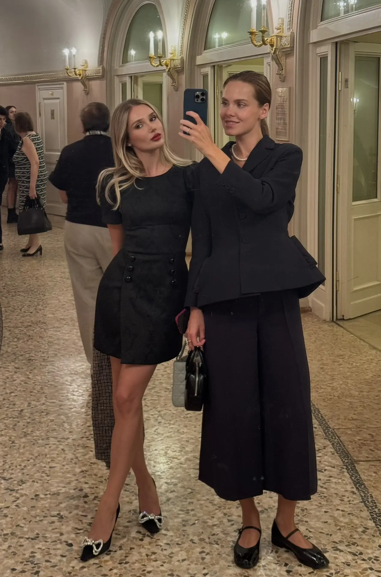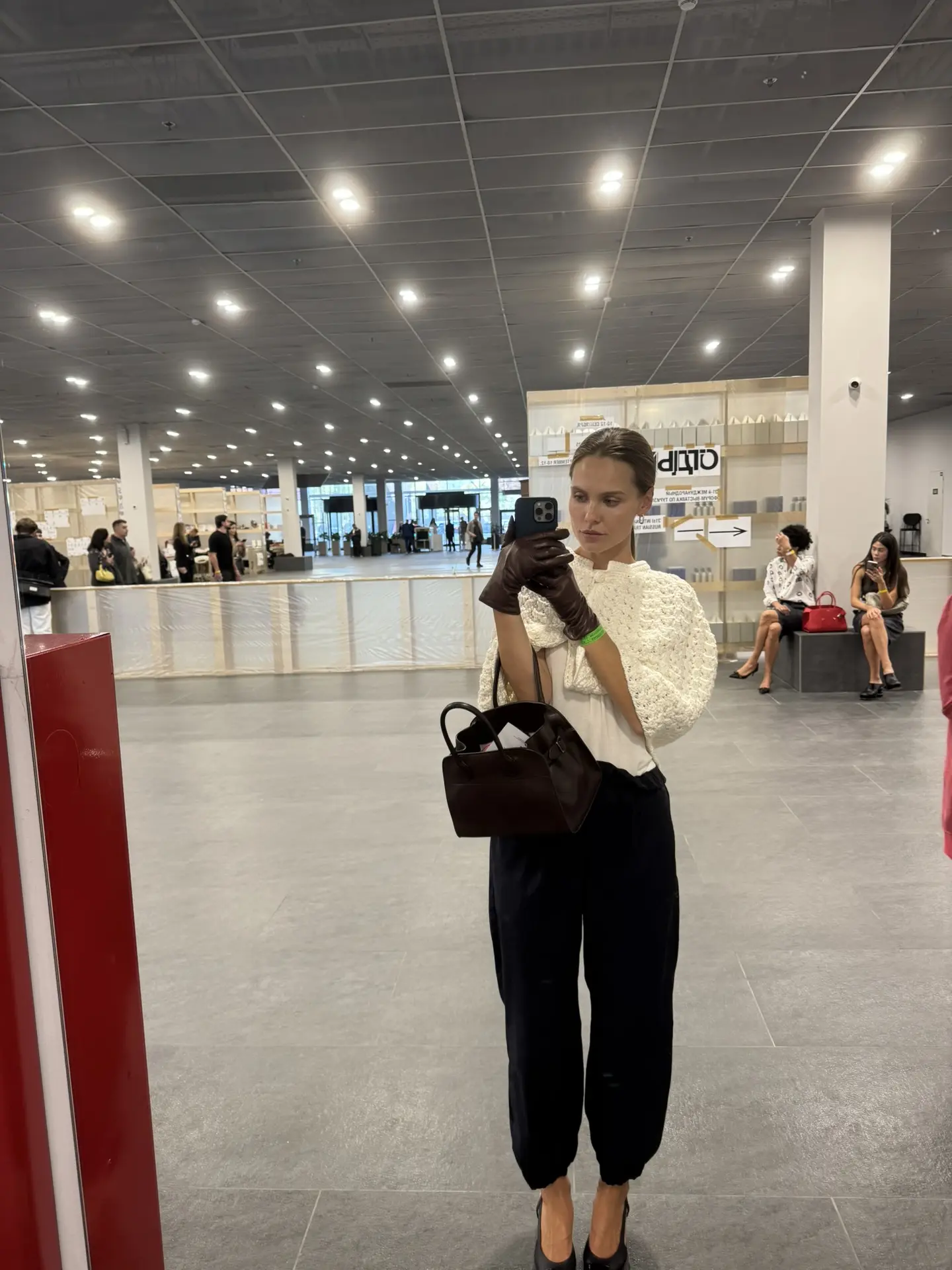 Это я по приглашению Fendi осенью 2022-го: ем пасту и выгуливаю классный образ с сочетанием двух сумок. Было классно!