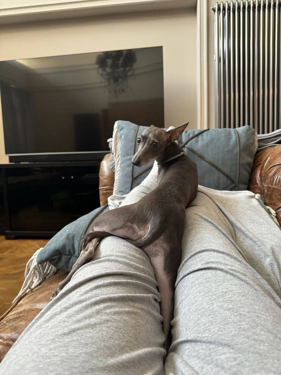 Мой муж не планировал заводить собаку, но в итоге согласился (после моих многочисленных доводов и уговоров) 🥹 Меня подкупило то, что эта порода не искусственно выведенная. Кстати, с французского lievre — заяц. Левретки очень прыгучие, без труда могут запрыгнуть на поверхность (и стол тоже).