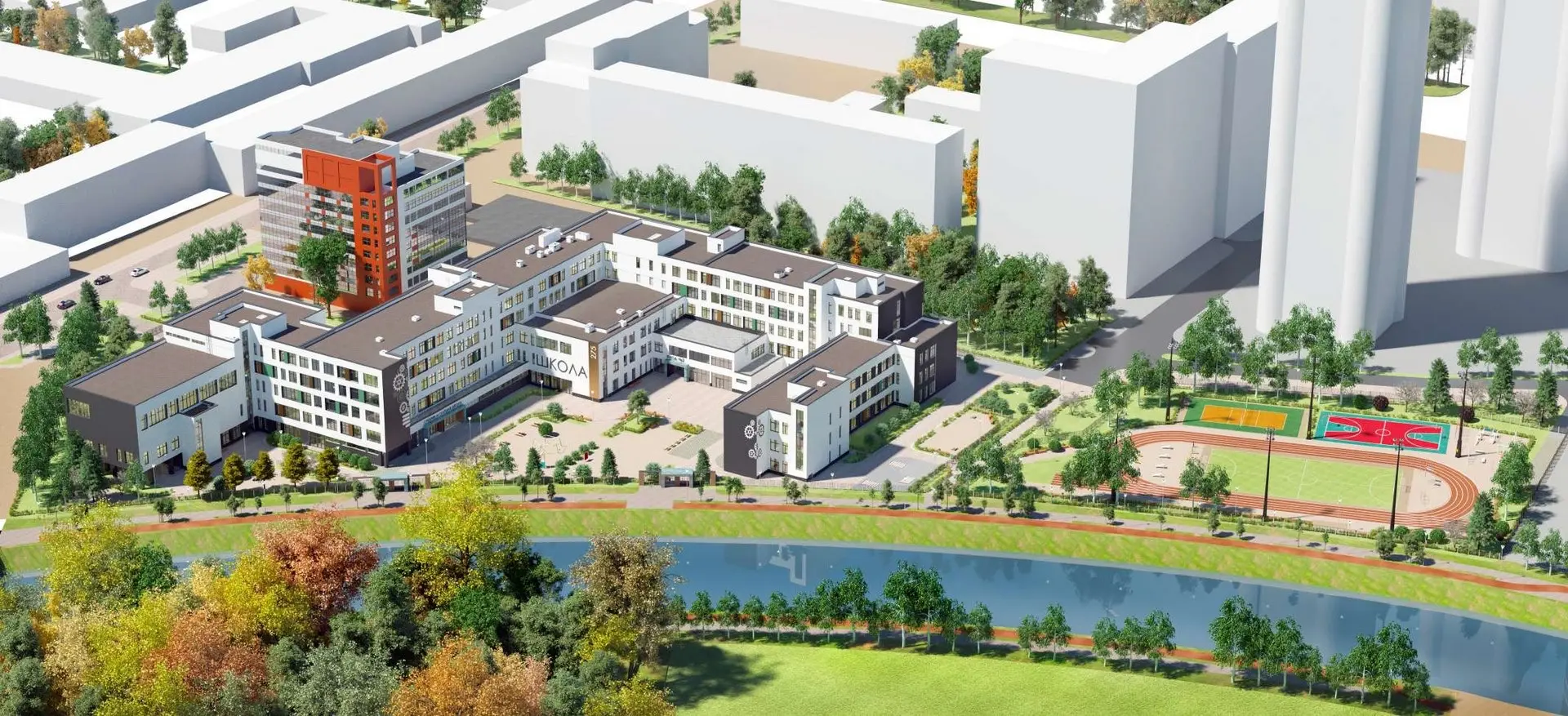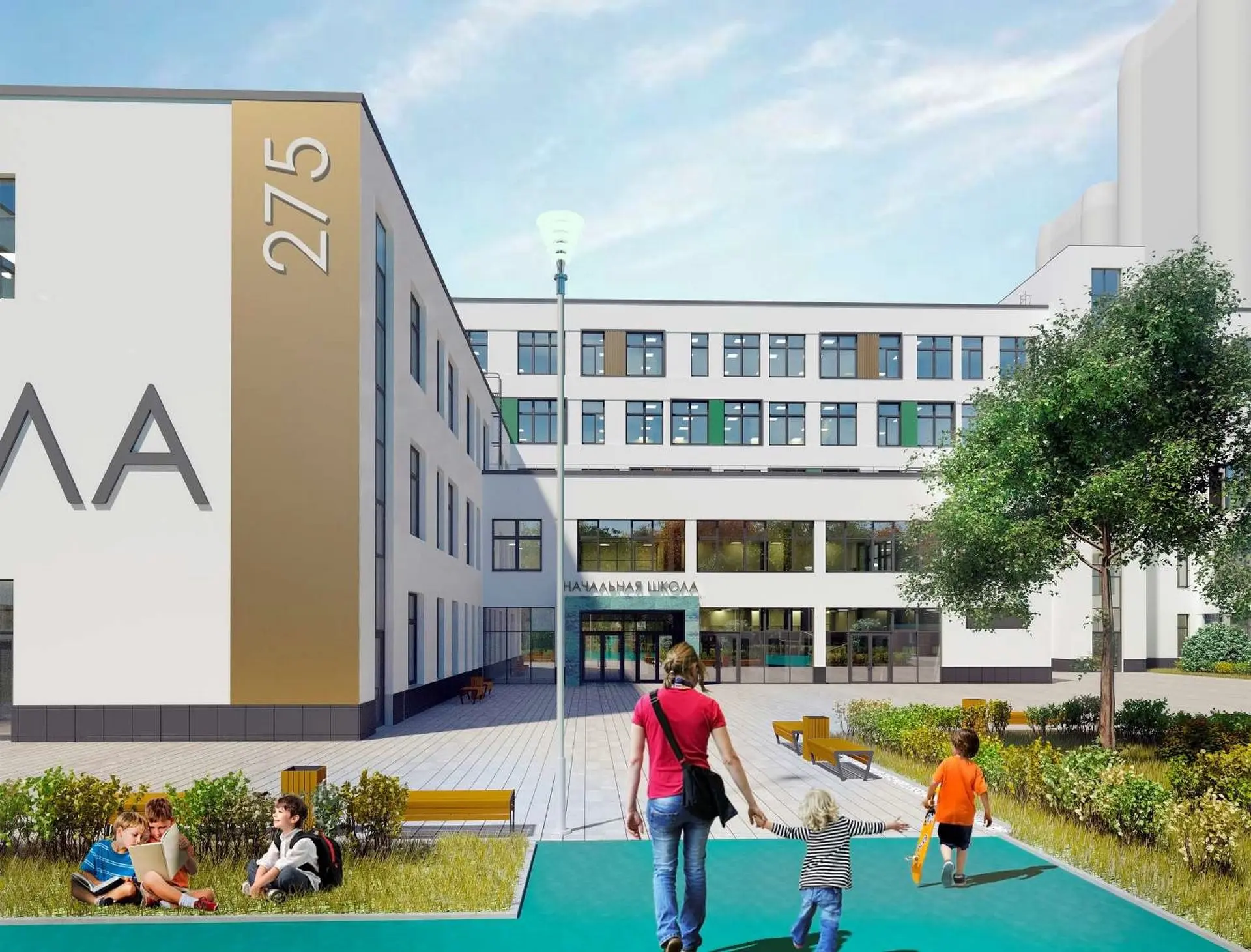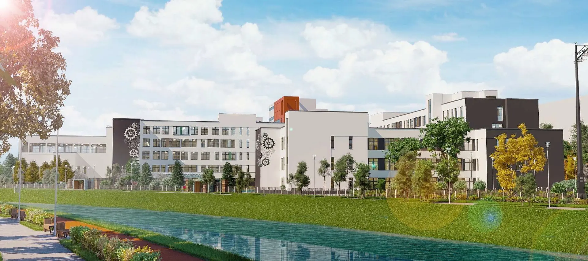 Площадь здания составит 30,2 тысячи квадратных метров. В школе разместятся инновационные учебные кабинеты, современные спортивные и актовый залы, лаборатории, библиотека и столовая. Начальная школа рассчитана на 500 учеников, средняя и старшая — на 1000.