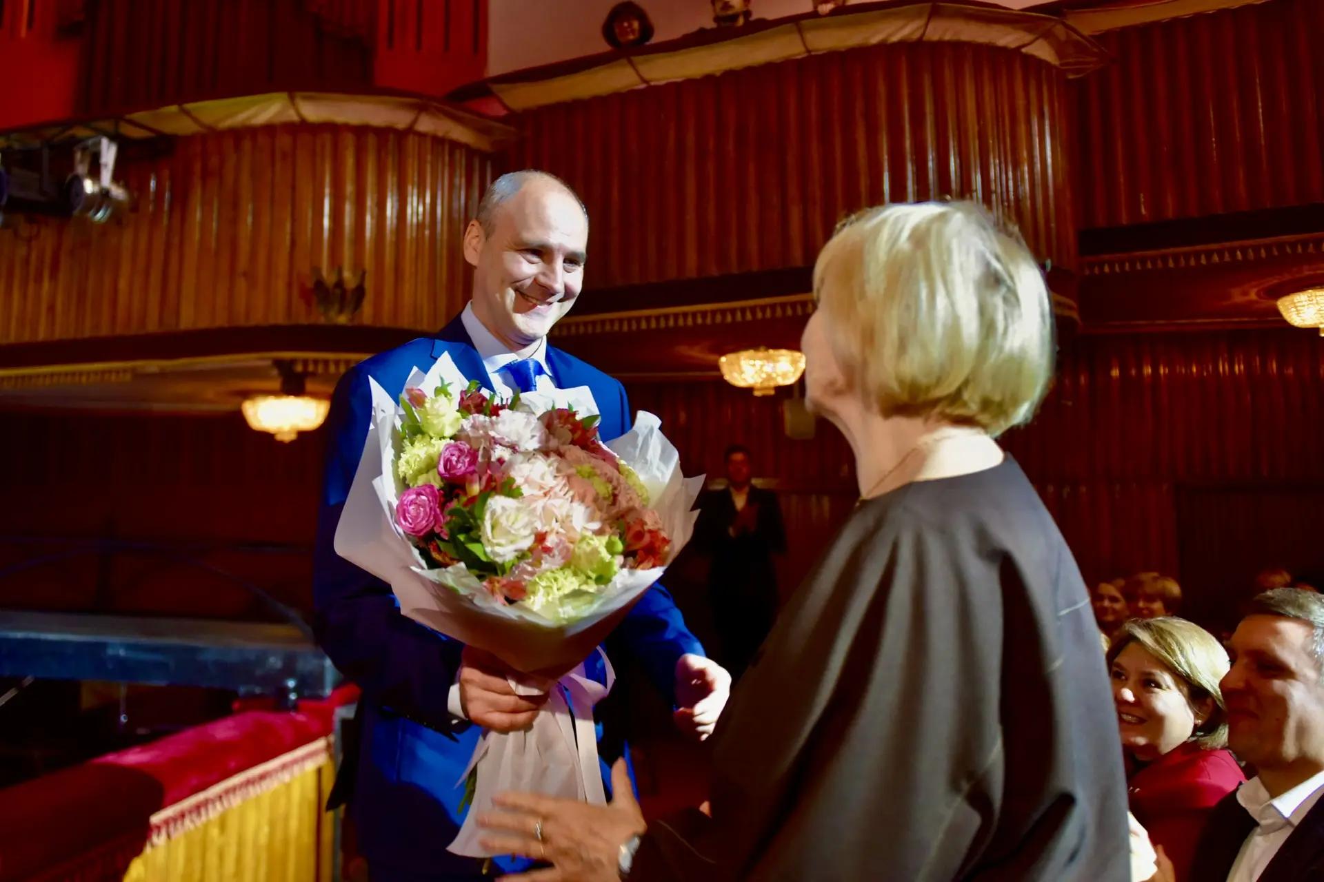 Особенно приятно, что в зале сегодня присутствовала мой преподаватель по русскому языку и литературе, о которой рассказывал вчера. Был рад лично поздравить Людмилу Николаевну от себя и от всего нашего 10 «В» класса.