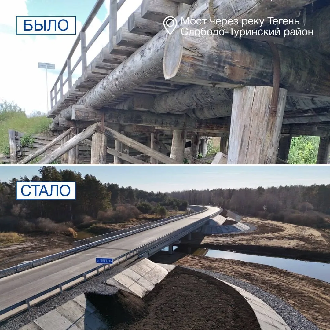 Открыто движение по мосту через реку Тегень в Слободо-Туринском районе. Дорожники провели масштабную работу, построив вместо старого деревянного сооружения надежный железобетонный мост. За два года реконструировали 526 метров, из них 60 метров – непосредственно мост. Его пропускная способность – до 14 тонн на ось.