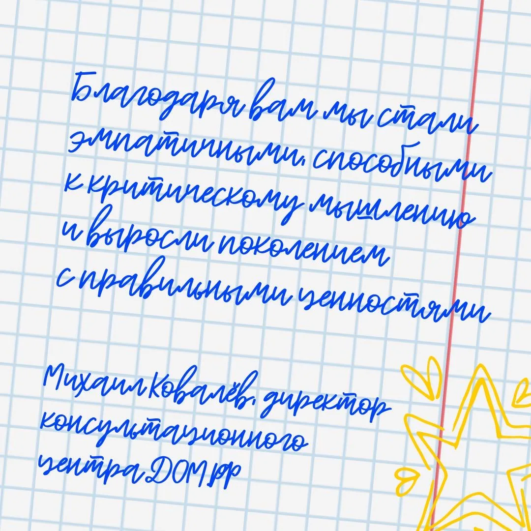 Вместо замечаний в тетрадях — наши послания вам, дорогие наставники. Мы уже давно выросли, но в этот день снова чувствуем себя школьниками.