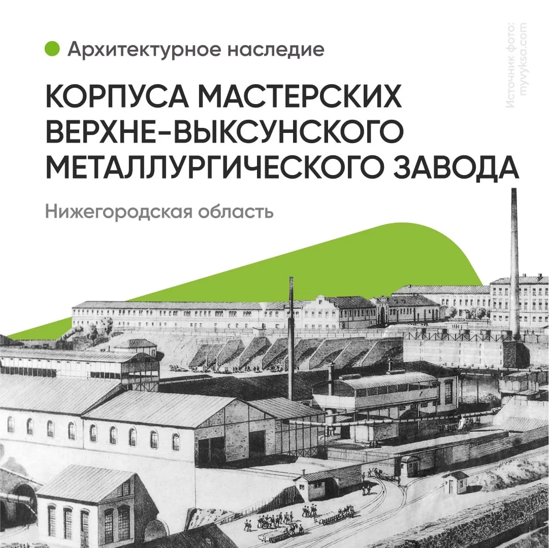 Корпуса мастерских Верхне-Выксунского металлургического завода — часть объекта культурного наследия федерального значения «Усадебно-промышленный комплекс XVIII–XIX веков». Их построили в 1765 году промышленники братья Баташевы.