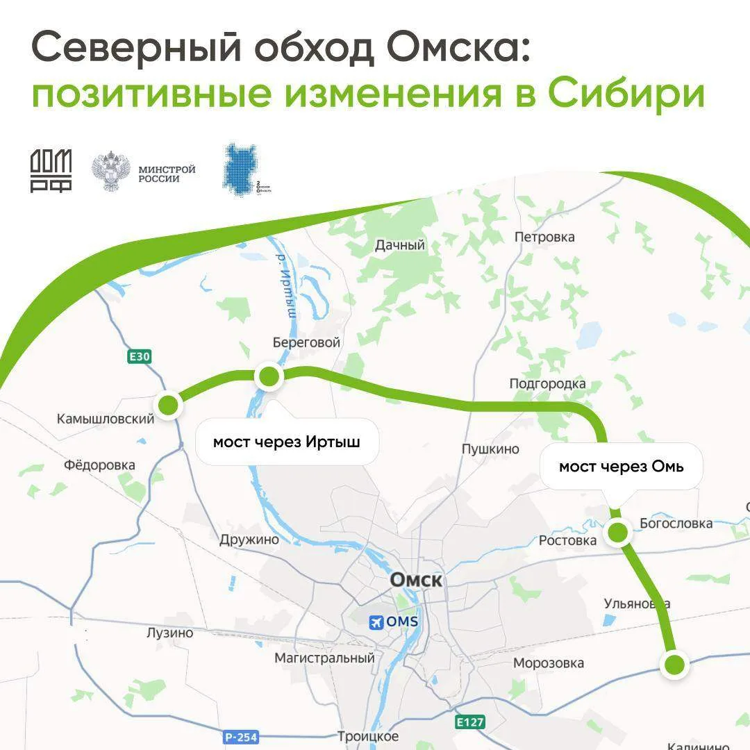 ✅ Появится четырёхполосная дорога протяженностью почти 66 км, включая два моста через реки Иртыш и Омь, 19 путепроводов и 5 транспортных развязок.
