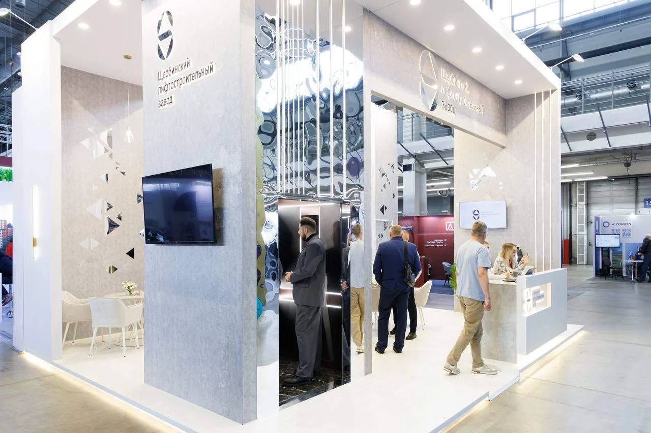 👍На стенде ЩЛЗ (входит в ДОМ.PФ) представили лифт бизнес-класса «Горизонт» в уникальной отделке с технологичными деталями из зеркальных элементов и подсветкой купе кабины.