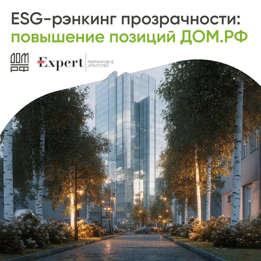 Взлетели почти на 50 позиций вверх! ДОМ.PФ поднялся с 72-го на 27-е место в рэнкинге ESG-прозрачности российских компаний агентства Expert RA. А Банк ДОМ.PФ — с 73-го на 26-е.