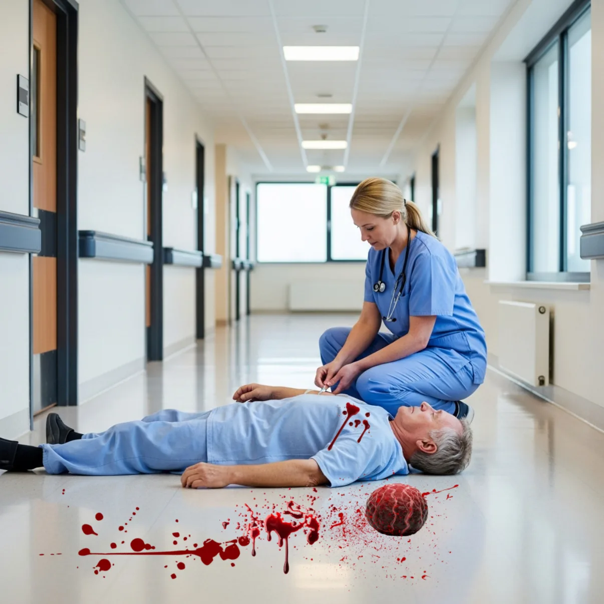 Я вызвала дежурного врача, но пациент мгновенно умер, и реанимационные действия без эффекта.