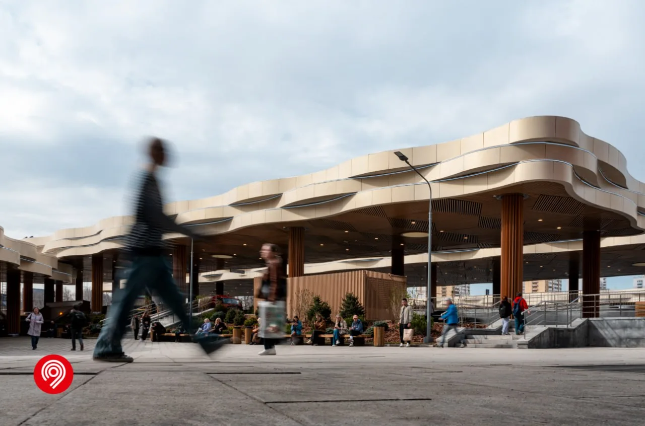 🔹 Кинетическая конструкция. Ее медиаэкраны-соты могут менять свое положение каждые 1-2 сек.