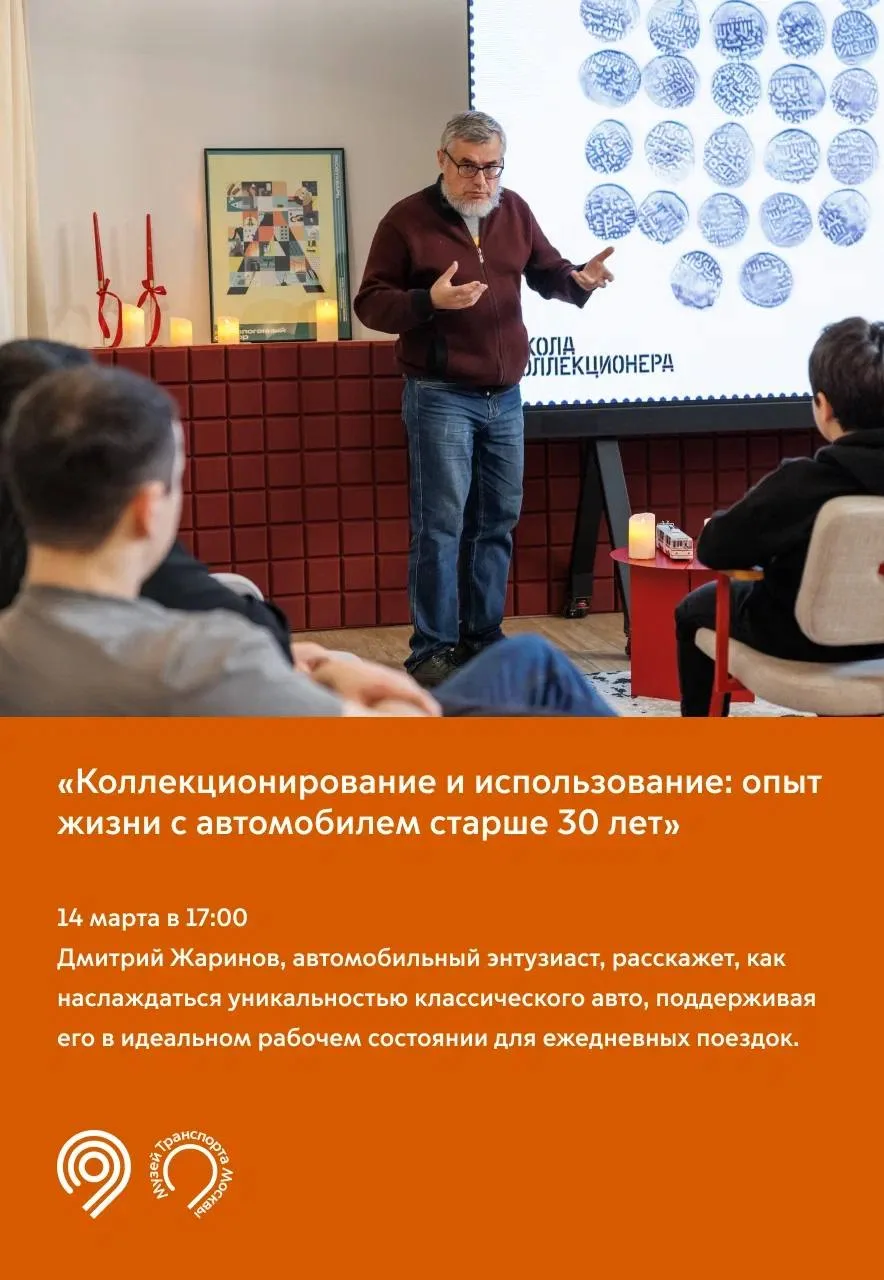 🔹 14 марта в 17:00 — лекция «Коллекционирование и использование: опыт жизни с автомобилем старше 30 лет».