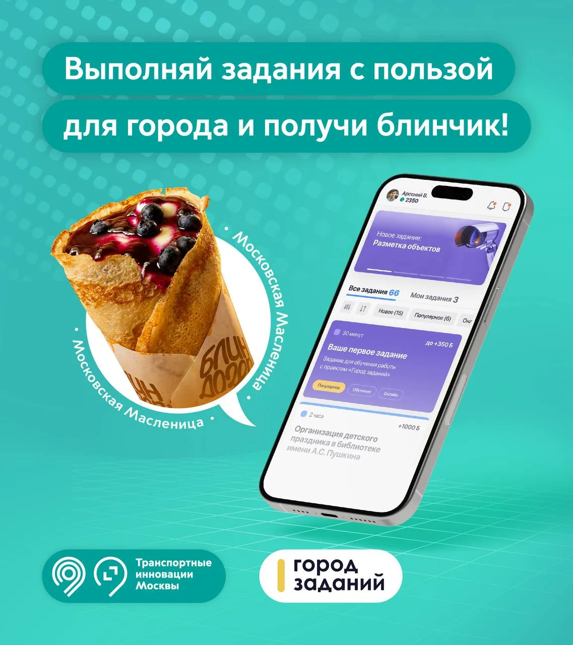 1️⃣ Онлайн-этап. Зарегистрируйтесь на сайте «Город заданий» и пройдите тематическую викторину. 200 человек, которые первыми ответят на все вопросы верно, получат промокод на блин.