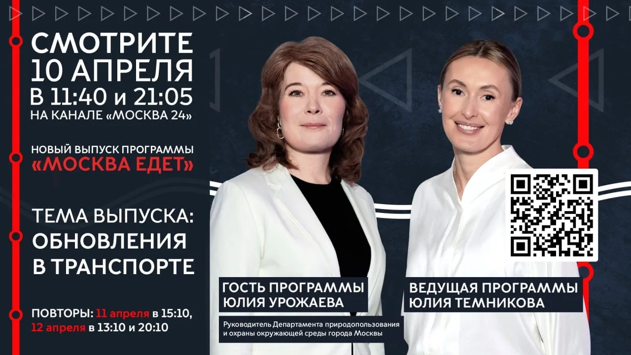 В эту пятницу в 11:40 смотрите программу «Москва едет» на канале «Москва 24». У нас в гостях — Юлия Урожаева, руководитель Департамента природопользования и охраны окружающей среды города Москвы. Поговорим о развитии электротранспорта и о столичной экологии в целом: