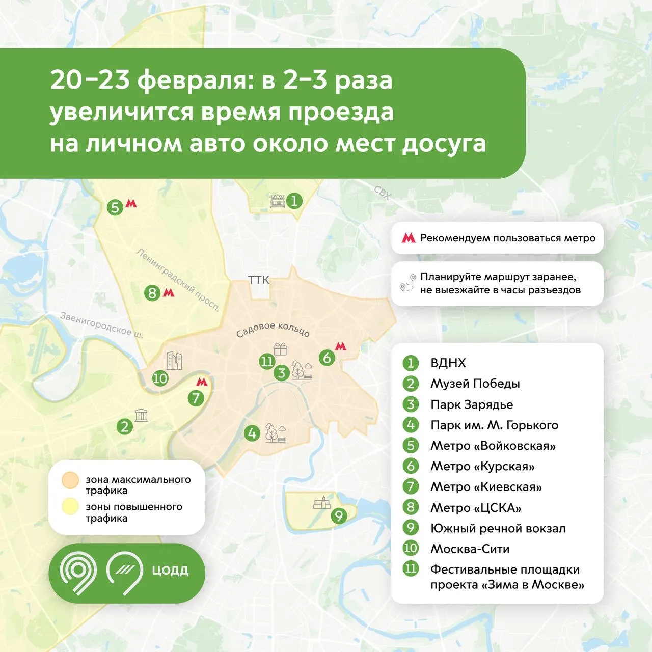 ЦОДД предупреждает: с 20 по 23 февраля движение в городе будет плотнее обычного.