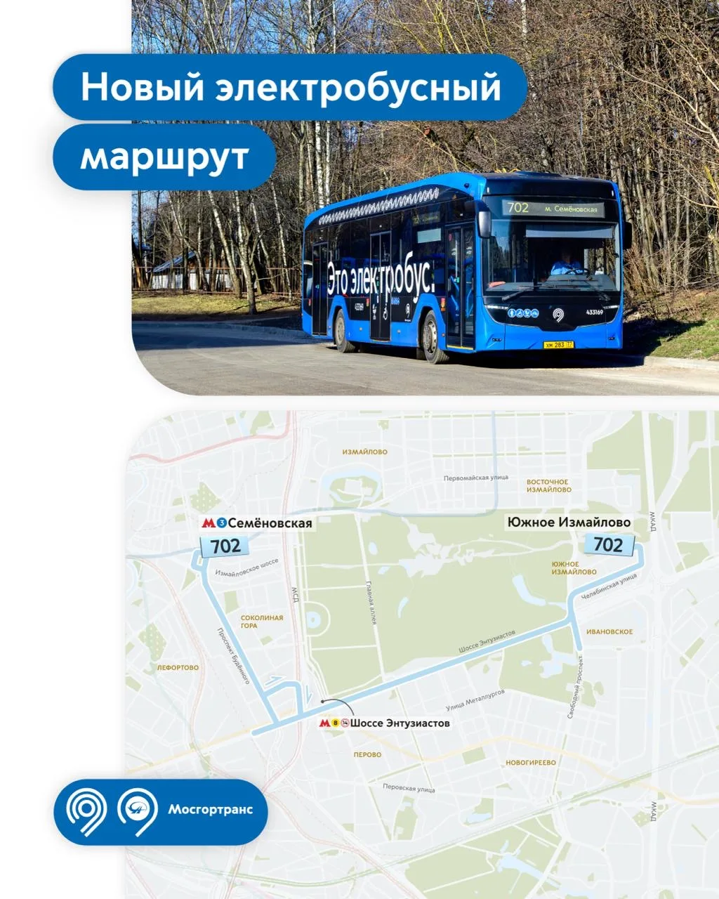 «По задаче Мэра Москвы Сергей Собянина мы продолжаем расширять сеть экологичных маршрутов. На одно из направлений в ВАО вышел современный транспорт на электротяге. Электробусы будут доезжать до 3 станций рельсового каркаса: к метро «Семеновская» и «Шоссе Энтузиастов», а также одноименной станции МЦК», — добавил Максим Ликсутов.